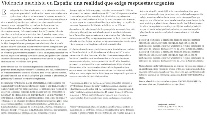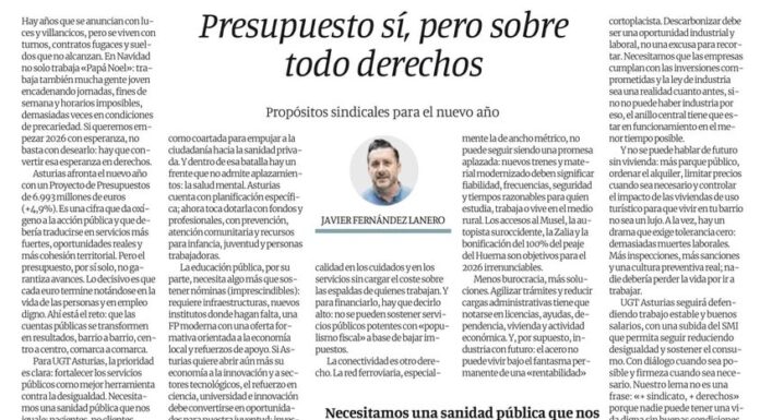 Buenos días, agradecer a sus señorías en nombre de UGT Asturias el poder asistir a esta Comisión para trasmitirles nuestra opinión acerca del contenido del Proyecto de ley de Presupuestos Regionales de Asturias para 2026.